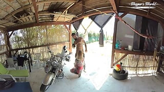 Awek Jepun yang sultry dikukus dalam sauna untuk keseronokan creampie liar